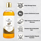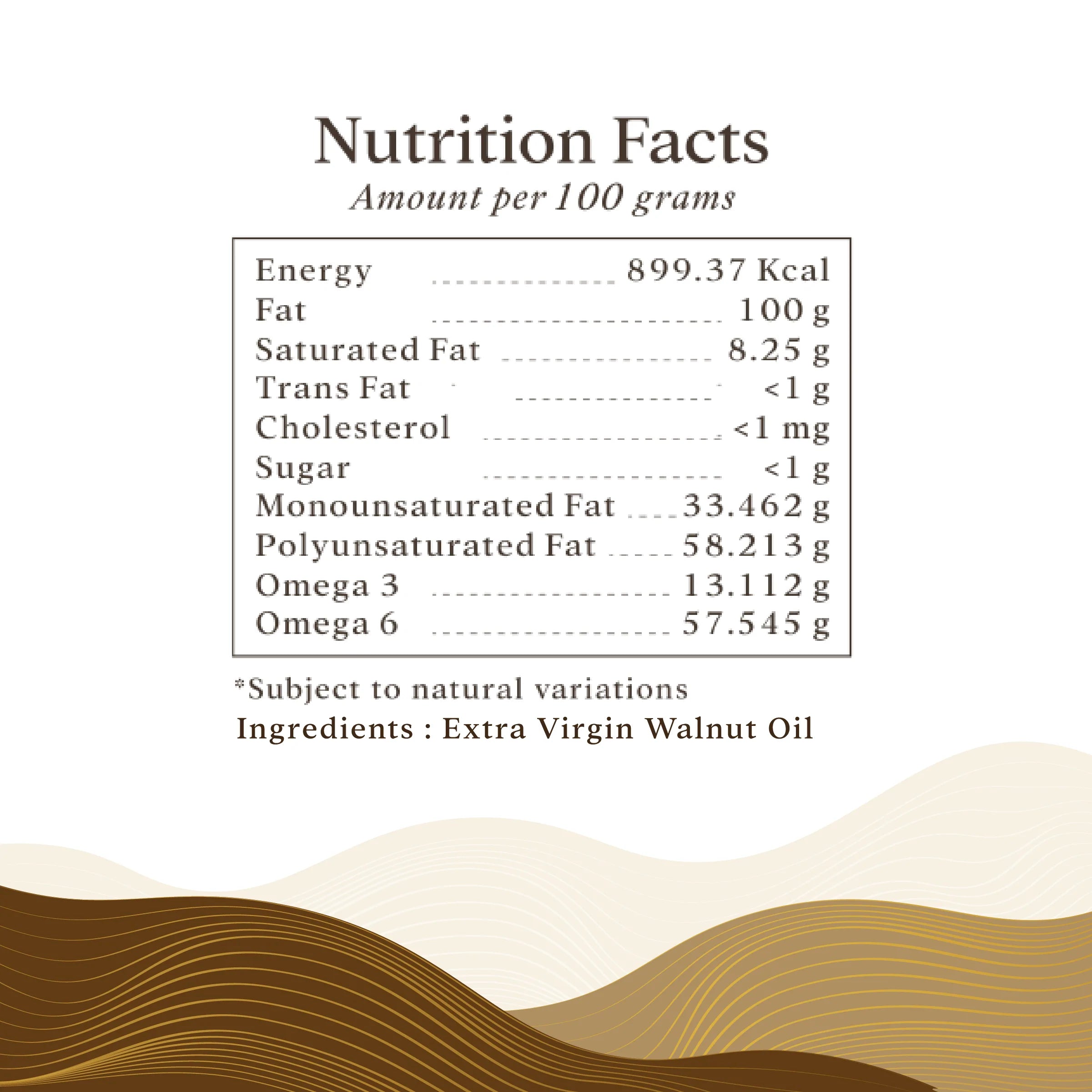 While regular consumption of Walnut oil has miraculous benefits for overall skin health, topical application is a great way to reduce signs of ageing and treat skin related conditions. Take some oil in your palms and gently massage it into your skin with circular motions once a day for best results.