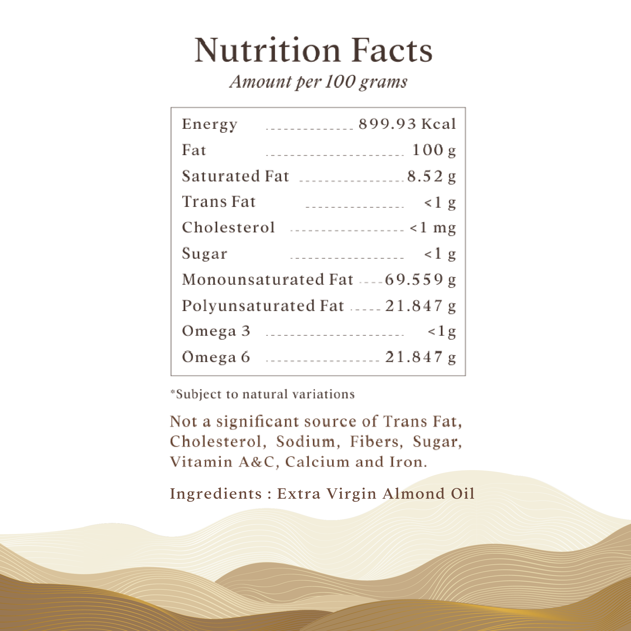 The king of oils, almond oil is a nutritional powerhouse that nourishes and hydrates the entire body. It's a perfect partner and a must have vanity for taking care of your supple and glowing skin as well as for strong and nourished hair. Experience the true luxury of supple skin, beautiful locks and nourished body with Multano Almond Oil.