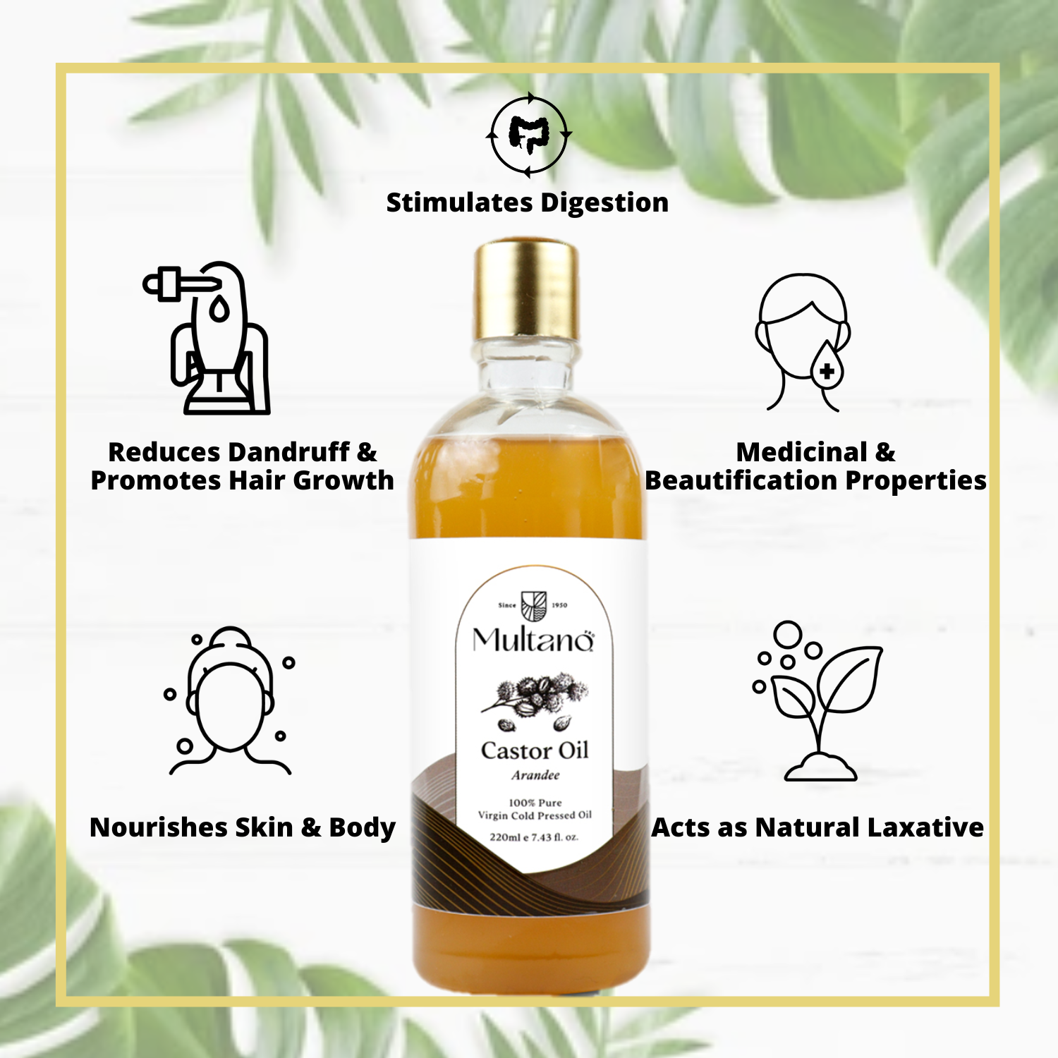 Castor oil is renowned for its medicinal and beautification properties. Its anti-bacterial, anti-inflammatory and moisturizing effects treat acne, fight fungal infections and dandruff. Castor oil has hair growth increasing properties. It is also a triglyceride that prevents skin infection, improves localized blood flow, and sheds damaged skin cells. Rich in essential fatty acids that are nourishing for the skin and body, Multano’s Castor oil is the perfect addition to your makeup vanity. Castor oil is widely acclaimed for its laxative benefits. It has been traditionally used to stimulate digestion and relieve constipation. Its high levels of ricinoleic acid, an omega-9 fatty acid, help in acting as a natural laxative.